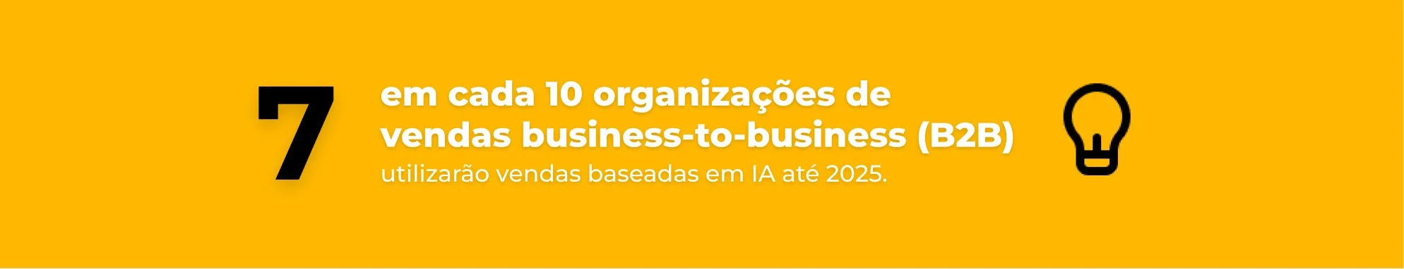 As novas abordagens, quando olhamos para as inovações no mercado B2B, têm se baseado em Inteligência artificial (IA) – também conhecida por machine learning (ML) – como suporte fim-a-fim do processo de vendas. Segundo o Gartner, pelo menos 7 em cada 10 organizações de vendas B2B utilizarão vendas baseadas em IA até 2025.